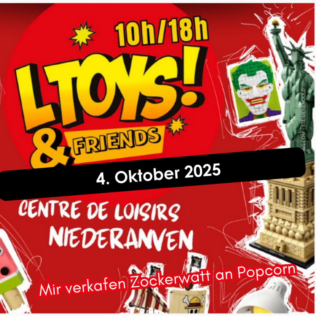 Opgepasst Lego-Fans! Mir hunn en Stand op der Lego-Expo am Loisi! Mir verkafen Zockerwatt an Popcorn…
