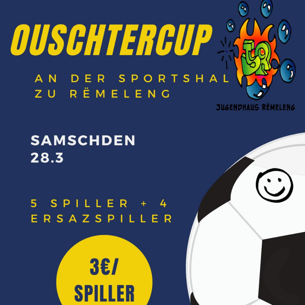 Komm mat eis kicken a power dech aus! Mir hunn d'Hal fir 2 Stonnen. Depart ass um 14h45 beim Jugendhaus.